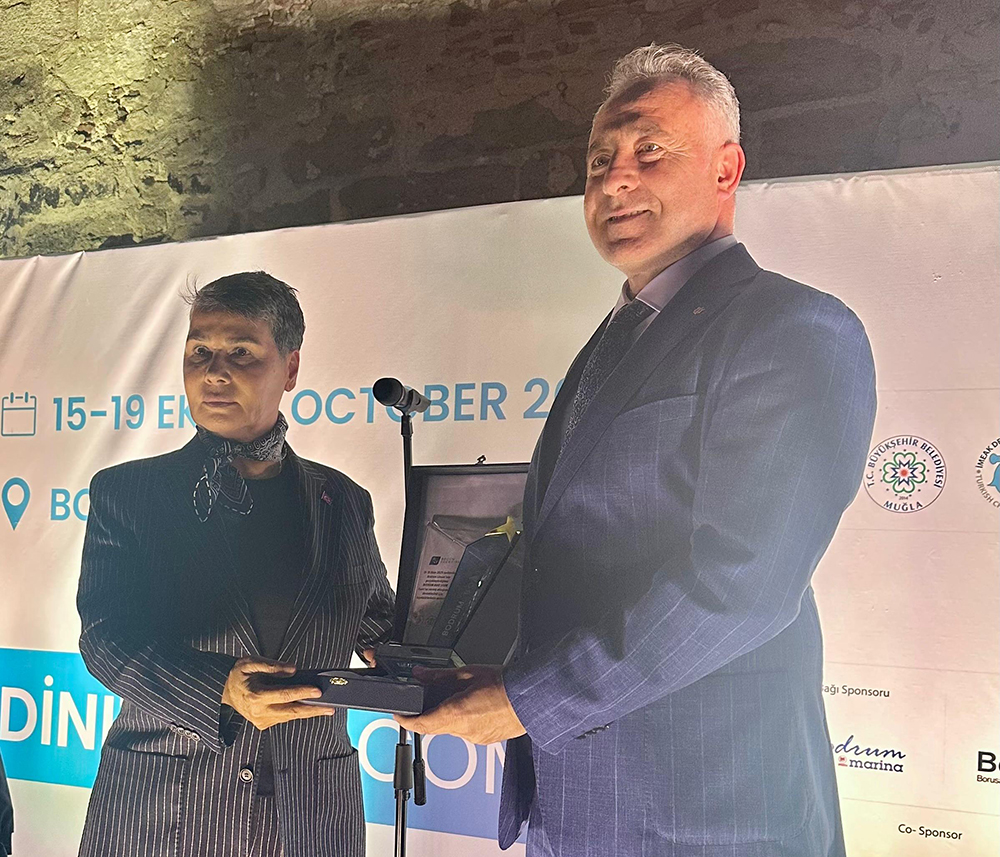 Bodrum Boat Show’da DTO Yönetim Kurulu’nun düzenlediği ödül töreninde ödül takdim ederek beni onore ettiler. Bunun bir başlangıç olduğunu görüyorum. Arzu ettiğim Bodrum Fuarı’nın bundan sonra diğer markaların, diğer fuarların, charter fuarlarının, imalatçıların birleşip uluslararası fuar haline gelmesini sağlamamızdır.”